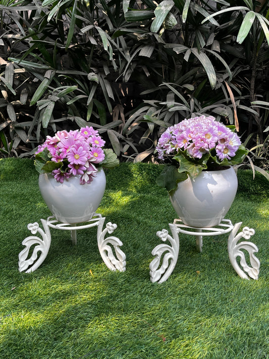 Twin Bloom Cast Iron Plant Stand – Set of 2 Pcs (6 Inch tray, 9 inches height)